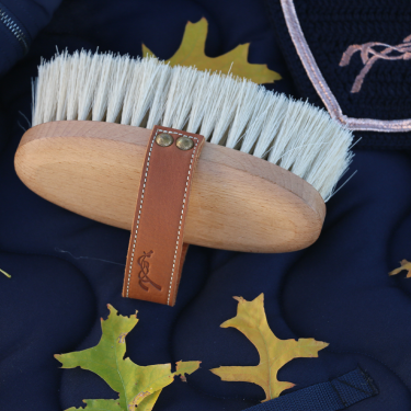 La brosse douce Pénélope grand modèle allie style et fonctionnalité pour prendre soin de votre cheval avec délicatesse. Idéale pour les zones sensibles, elle est équipée de poils ultra doux et d’une poignée en cuir végétal confortable, assurant une excellente prise en main.