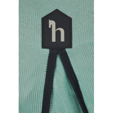Le couvre-cou fixe monte jusqu'aux oreilles et se termine par une capuche qui permet de bien le maintenir en place. Les soufflets d'aisance libèrent le mouvement lorsque le cheval se déplace et la douce doublure à l'encolure et aux épaules prévient tout frottement. Le grand rabat de queue est sécurisé par un cordon, il assure une grande zone de protection, de même le grand rabat ventral se ferme et se règle par des sursangles et bande auto-agrippante. Les fermetures à l'avant et à l'encolure sont des fermetures à tirette avec un ruban tactile résistant. La bande avec logo le long de la ligne du dos, les fermetures avant et les sursangles ventrales complètent le design de cette couverture anti-mouches vraiment bien pensée.