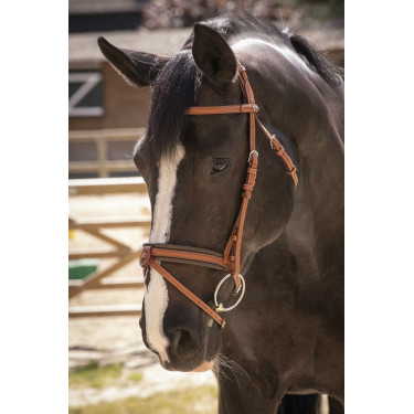 Le bridon "Élégance" de la collection Pénélope allie esthétisme et technicité. Ses surpiqûres crème contrastantes soulignent avec finesse les lignes du cuir. Il est doté d'une muserolle large combinée, doublée de cuir souple pour un confort maximal. La têtière anatomique, également doublée, épouse parfaitement la tête du cheval tout en réduisant les points de pression.