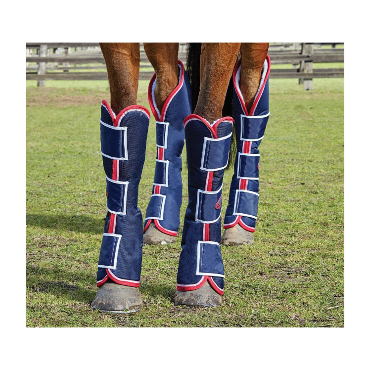 3 fermetures auto-agrippantes faciles à utiliser. Longueur supplémentaire pour une protection combinée des genoux et des jarrets. Référence : 1000679000 - MARINE/ROUGE/BLANC