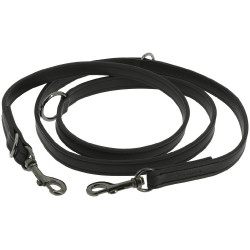 Conçue en matière synthétique aspect cuir, cette laisse allie élégance et résistance pour un usage quotidien.