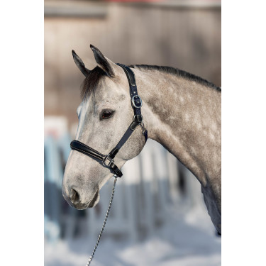 Têtière anatomique à double réglage pour un ajustement optimal, rembourrée et doublée de cuir souple. Muserolle également rembourrée et doublée pour un confort maximal.