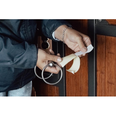 Mesurant 90 cm de long, cette enveloppe polyvalente peut être découpée pour s'adapter à n'importe quelle taille et forme de mors, garantissant un ajustement personnalisé adapté aux besoins de votre cheval. Le tissu en latex est solide et fait pour durer, une fois placé, il n'est pas possible de l'enlever et de le réutiliser. Forme et taille