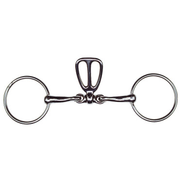 Mors en acier inoxydable, équipé d'une demi-palette pour limiter le passage de la langue, favorisant un meilleur contrôle.