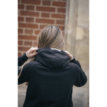 Le sweat Native arrive dans la gamme Eden by PL. On garde le même esprit avec ses trois bandes tricolores, et un grand col qui protège contre les courants d'air. Ce grand col est équipé de cordon de serrage qui permet un ajustement optimal. Il y a une poche de chaque côté qui est surmonté de l'iconique point sellier Pénélope.