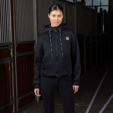 Équipé de deux poches avant avec fermetures zip masquées, il est aussi doté d'une fermeture zip frontale avec une tirette en caoutchouc F&C. Une impression orne le dos de l'épaule gauche, accompagnée d'une broderie en haut du dos.