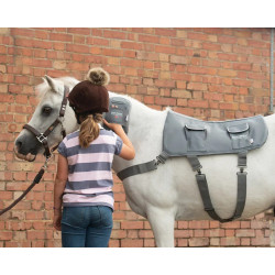Le tapis de massage s'adapte à une gamme de chevaux et de poneys et peut donc être facilement transféré de cheval à cheval ou à poney. Il est livré dans un sac de transport pratique qui le rend idéal pour une utilisation à la maison, à l'extérieur. Il est facile à ranger dans la sellerie et est facile à nettoyer. Le sac possède également des emplacements de stockage utiles pour la batterie et le chargeur.