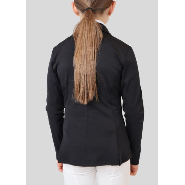 La veste de concours Montar Junior allie style et confort avec une coupe ajustée et des finitions raffinées. Les boutons brillants ornés du logo Montar sur le devant et les poignets ajoutent une touche d’élégance, tandis que le col et le nœud arrière décorés de strass noirs apportent une subtile sophistication. Un logo Montar est également présent sur l’épaule gauche pour une signature distinctive.